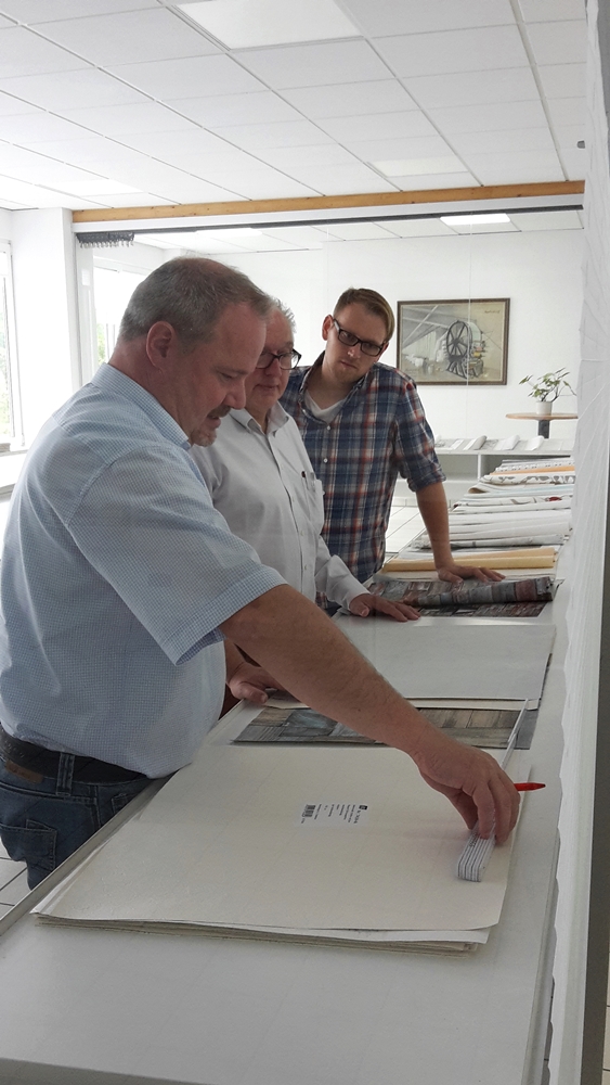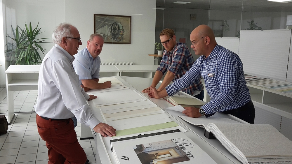 Letzte Woche waren unsere Kollegen Herr Schneider, Herr Bosche und Frau Drießen zu Gast bei der Erismann & Cie. GmbH um unsere Tapetenkollektion „Spectrum“ neu zusammenzustellen.